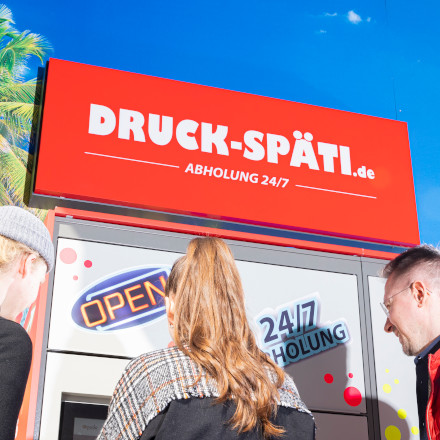 Mit dem DRUCK-SPÄTI ermöglicht optiplan insbesondere jungen Kunden, ihre Semester- und Abschlussarbeiten “auf den letzten Drucker” abzuholen, auch nachts und am Wochenende. Ebenso wird dieser 24/7-Abholservice von der Stammkundschaft, insbesondere nach Ladenschluss, gerne genutzt.